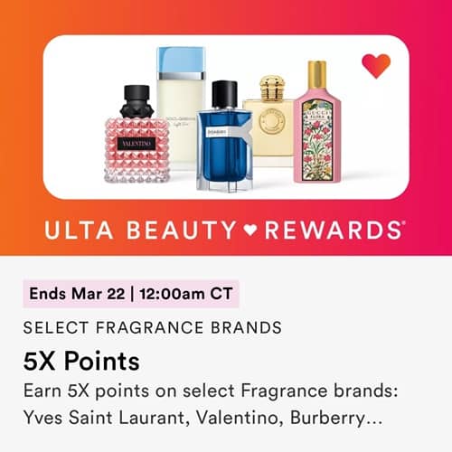 Fragrance lovers, discover your new signature scent and earn those BONUS POINTS! Ulta Beauty Rewards members (free to join) earn 5X…