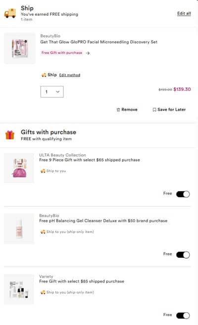 Be sure to add on any FREE gifts with purchase your order may qualify for: