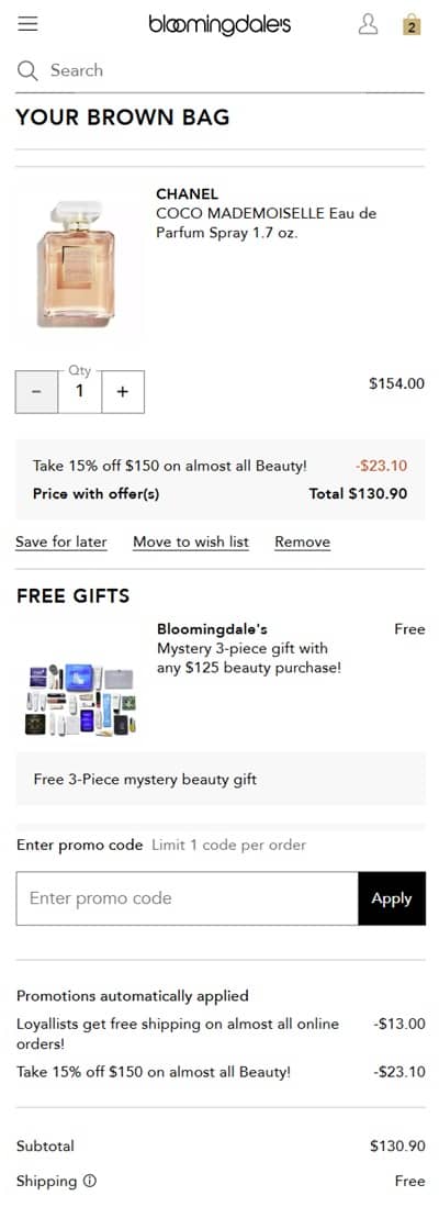 No code needed, eligible Bloomingdale’s beauty items are marked “Take 15% off $150: Discount applied in bag”. The discount will reflect in cart once your order qualifies. The FREE gift with purchase will add once your order qualifies. FREE SHIPPING applies to most orders for Loyallist members (free to join) or beauty orders $50+ for non members. Exclusions may apply. Take a look at our other favorite finds!