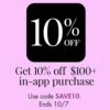 Sephora APP Exclusive 10% OFF Purchases $100+