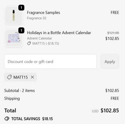 New customers use the coupon code MATT15 (click to copy) to save 15% OFF your first purchase. Don’t forget to add your FREE sample. FREE SHIPPING applies automatically at check out. Take a look at our other 2025 Advent Calendar value breakdowns!