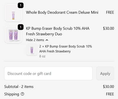 FREE SHIPPING always gets us! Don’t have FOMO on this FAB BOGO! Buy one First Aid Beauty KP Bump Eraser Body Scrub and you’ll get a second for FREE! Gently buff away texture and dry skin while leaving your skin soft, smooth and smelling like fresh strawberries!