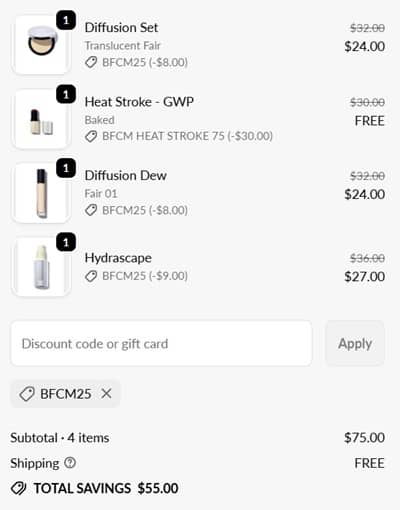 Use the MAKE Beauty Black Friday coupon code BFCM25 (click to copy) to add the discount to cart. You will be prompted to choose your FREE gift with purchase once your order qualifies. FREE SHIPPING applies to orders $50+. Excludes sale and bundles. Other exclusions may apply. Take a look at our other favorite finds!
