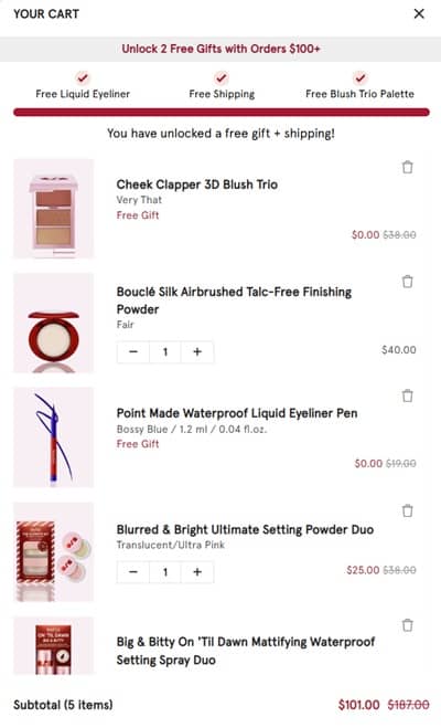 FULL SIZE freebies from ONE/SIZE? We can’t resist! Receive a FREE FULL SIZE Point Made Waterproof Liquid Eyeliner Pen. a $19 value, with any $50 purchase! Better yet, step up to a $100 order and you’ll also score a FREE FULL SIZE Cheek Clapper 3D Blush Trio Palette! That’s a total value of $57!