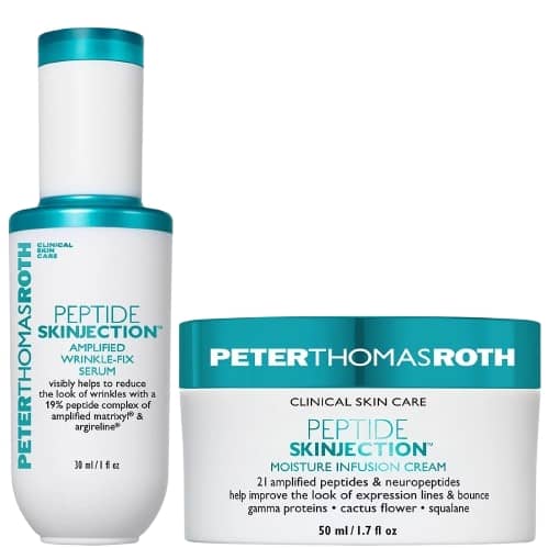 Target fine lines, wrinkles, and firmness with this powerhouse pair! Add the Peter Thomas Roth Skinjection Duo to your skincare routine for only $64.98 with FREE SHIPPING at QVC! This set includes a FULL SIZE Peptide Skinjection Amplified Wrinkle-Fix Serum, a $65 value alone, plus a FULL SIZE Peptide Skinjection Moisture Infusion Cream!
