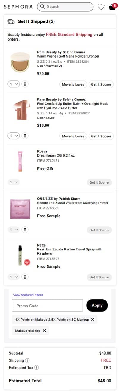 We’ve got some Beauty Insider love with a new points multiplier Besties! Sephora Beauty Insiders enjoy 4X Bonus Points on all Makeup purchases! Sephora Collection makeup earns you 5X points! Whether you’re restocking old favorites or treating yourself to the newest release from Dior, Rare Beauty, Natasha Denona, and more! Also available at Sephora in Kohl’s! Check out our example cart below!