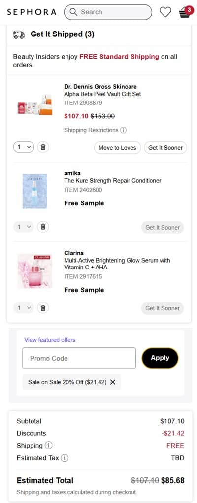 Use the Sephora coupon code BONUS20 to add the discount to cart. Use as many times as you like. Don’t forget to add your FREE samples. FREE SHIPPING applies to all orders for Beauty Insider members (free to join). Excludes Pureology, Mizani, L’Oréal Professionnel, and Kiehl’s. Other exclusions may apply. Take a look at our other favorite Sephora finds!