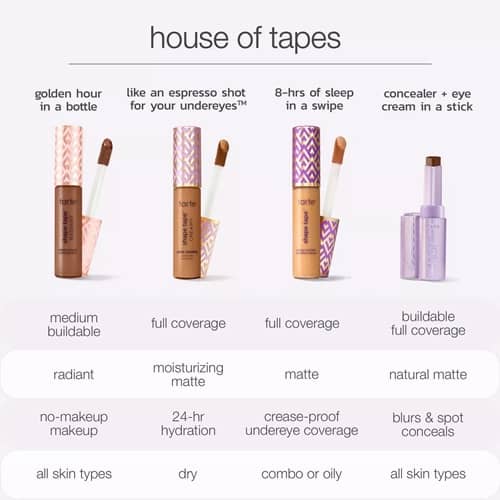 40% OFF = stock up time Besties! For a LIMITED TIME ONLY save 40% OFF your favorite Tarte Shape Tape Concealer formula at Ulta Beauty! Choose from the iconic original, creamy, or radiant, including the buildable full coverage blur concealer stick! Check out the chart below to help you choose! Restock your shade for less while you can!