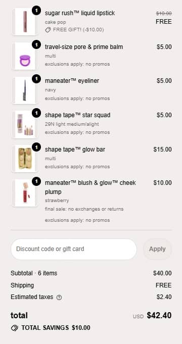 No code needed, eligible Tarte New Year sale items are priced as marked. Sign in to your account and the FREE gift with purchase will add once your order qualifies. FREE SHIPPING applies to orders $40+. Take a look at our other favorite finds!