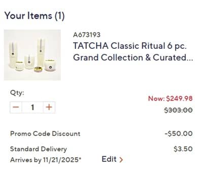 Stacking savings are going, going, almost gone! TODAY ONLY score the TATCHA Classic Ritual Grand Collection + Bag for only $249.98 PLUS take an ADDITIONAL 20% OFF at QVC using the code below! This set includes 6 FULL SIZE favorites: The Essence Skincare Boosting Treatment, a $110 value alone, The Camellia Oil 2-in-1 Makeup Remover & Cleanser, The Silk Cream, and more!