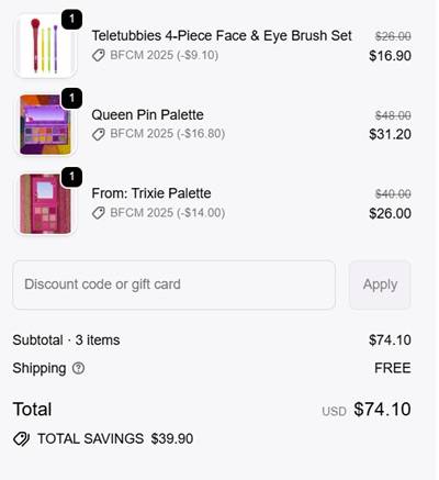 No code needed, eligible Trixie Cosmetics Black Friday sale items are priced as marked. FREE SHIPPING applies to orders $70+. Excludes sets. Other exclusions may apply. Take a look at our other favorite finds!