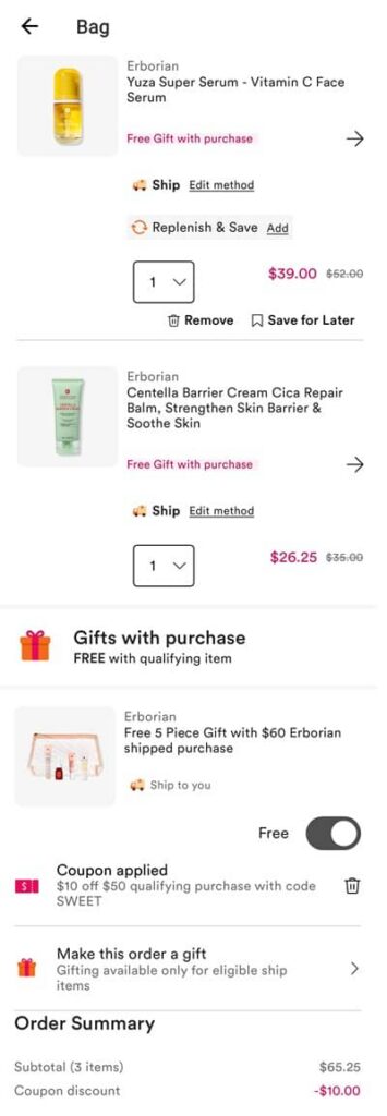 Today’s the day for a K-Beauty haul at Ulta Beauty! Shop UP TO 25% OFF select K-Beauty faves exclusively in the Ulta Beauty APP! You’ll choose from brands like TIRTIR, Erborian, fwee, MEDIHEAL, and more! Makeup and skincare included! PLUS save an additional $10 OFF orders $50+ or $20 OFF orders $100+ when you use the code SWEET in cart! Check out our example cart below!