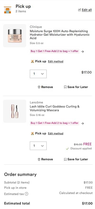 Add 2 eligible Ulta Beauty minis to cart and the lowest priced one will become FREE. FREE SHIPPING on orders $25+ for Diamond members and $35+ for everyone else. You can also choose Buy Online, Pick Up In Store (BOPIS) where available. Check out our other favorite Ulta Beauty finds!