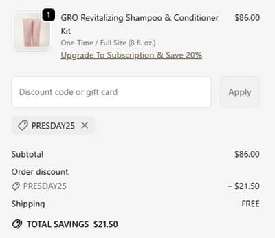 Use the VEGAMOUR hair care coupon code PRESDAY25 to add the discount to cart. FREE SHIPPING applies to orders $50+. Exclusions may apply. Take a look at our other favorite finds!